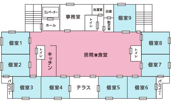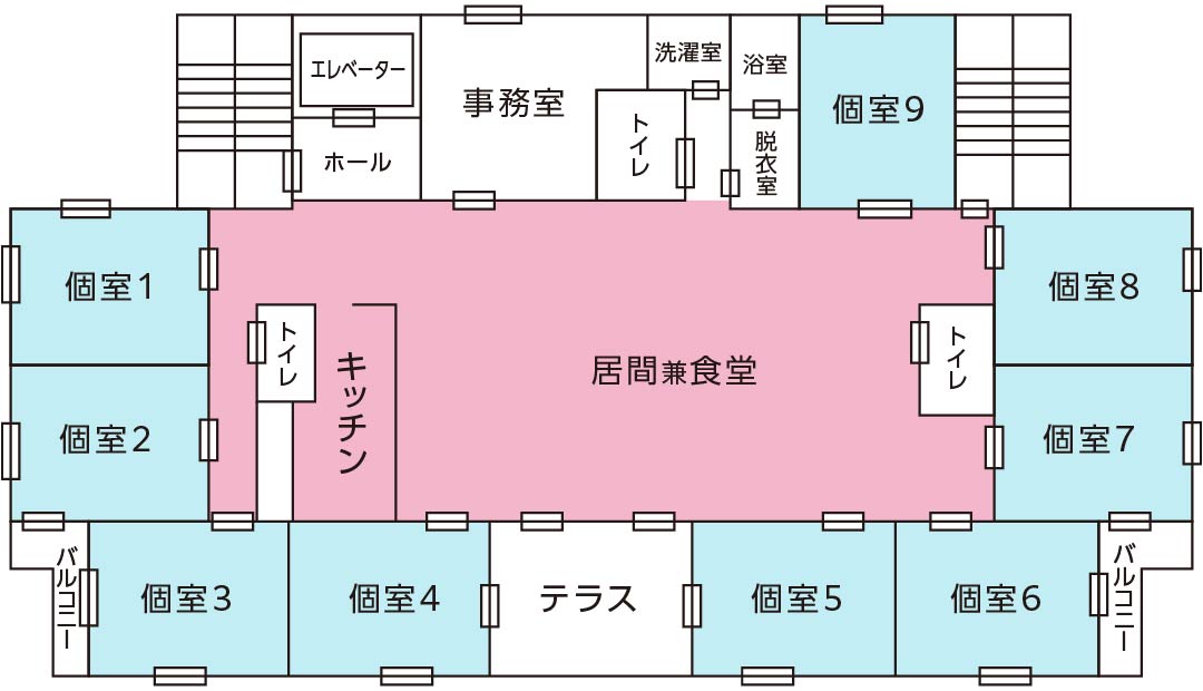 - 18名(全室個室 1室あたり居室面積:8.7~8.9㎡)